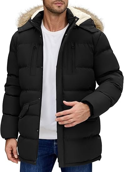 Men Long Winter Coat Fleece Windproof Waterproof Parka