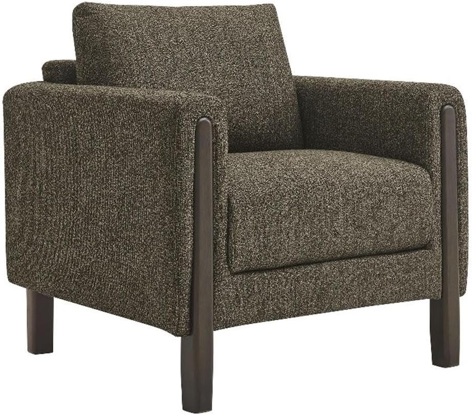 Modern Accent Chair with Metal Frame and Wooden Armrests