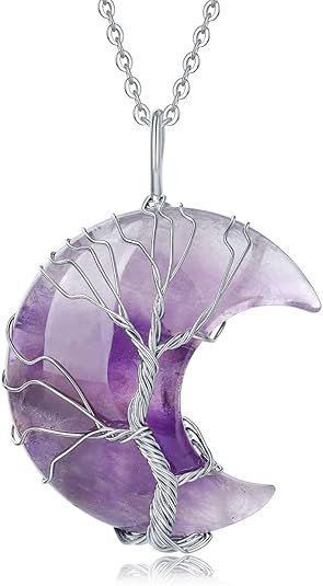 Crescent Moon Tree of Life Amethyst Crystal Necklace
