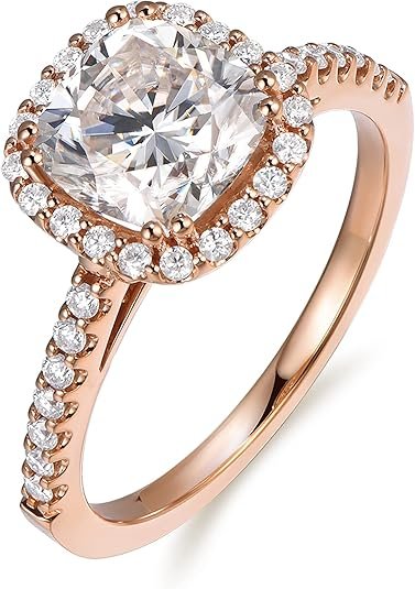 - Stunning 2CT Moissanite: Features a 7.5mm D color, VVS1-VVS2 cushion-cut moissanite, conflict-free and brilliantly sparkling