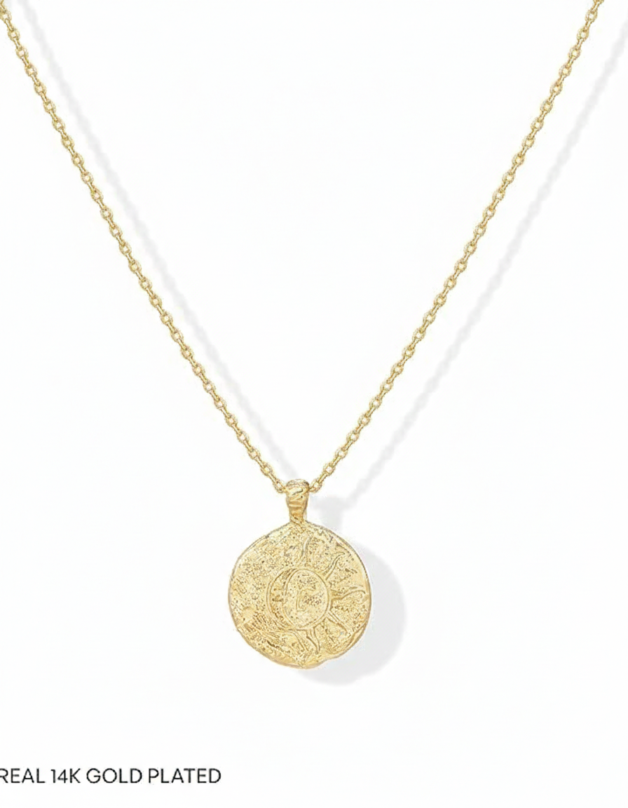 - Trendy Coin Pendant Design: Byzantine-inspired 18mm coin pendant featuring moon and star motif, perfect for boho, casual, or layering styles