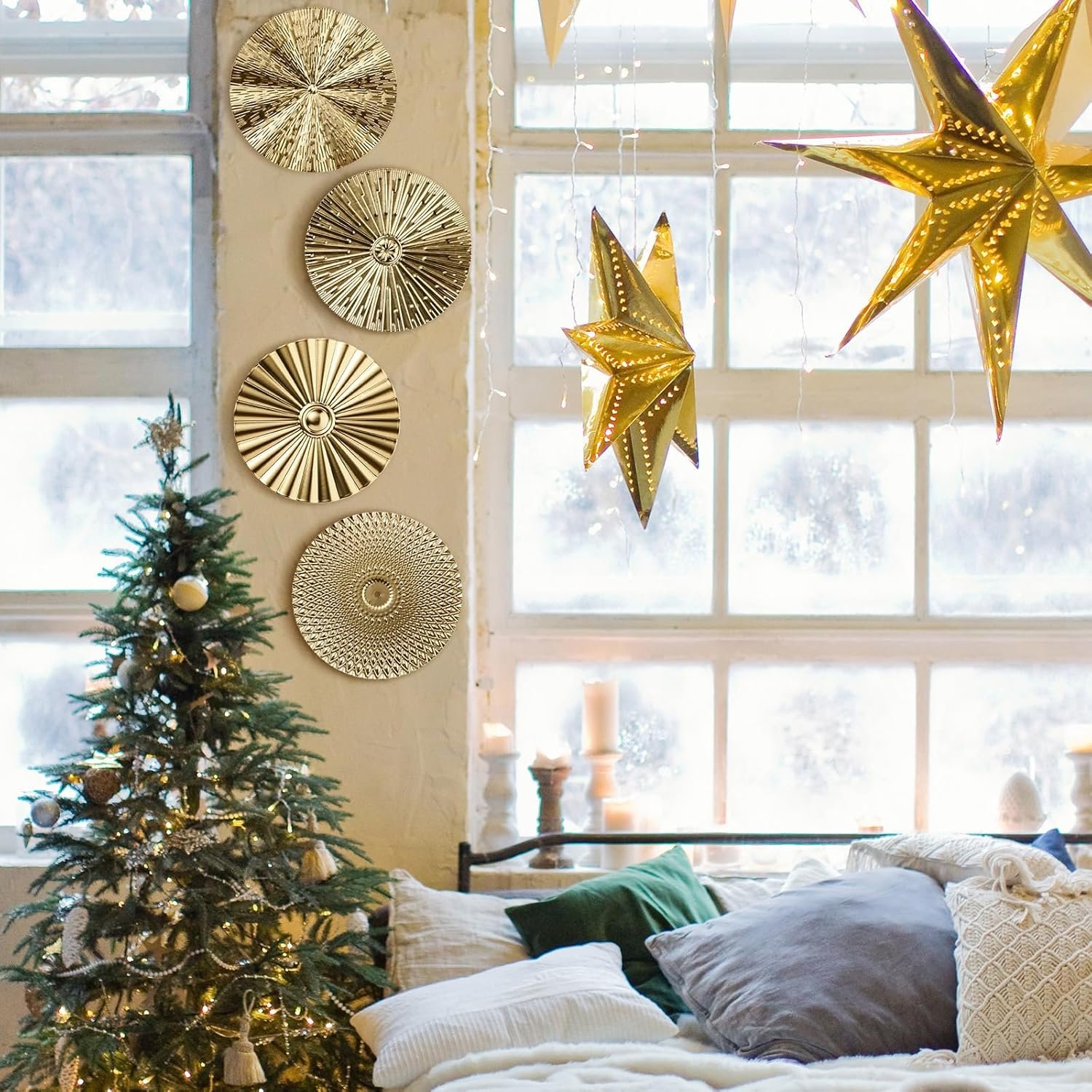 4 Piece 12 Inch Gold Metal Sunburst Wall Art