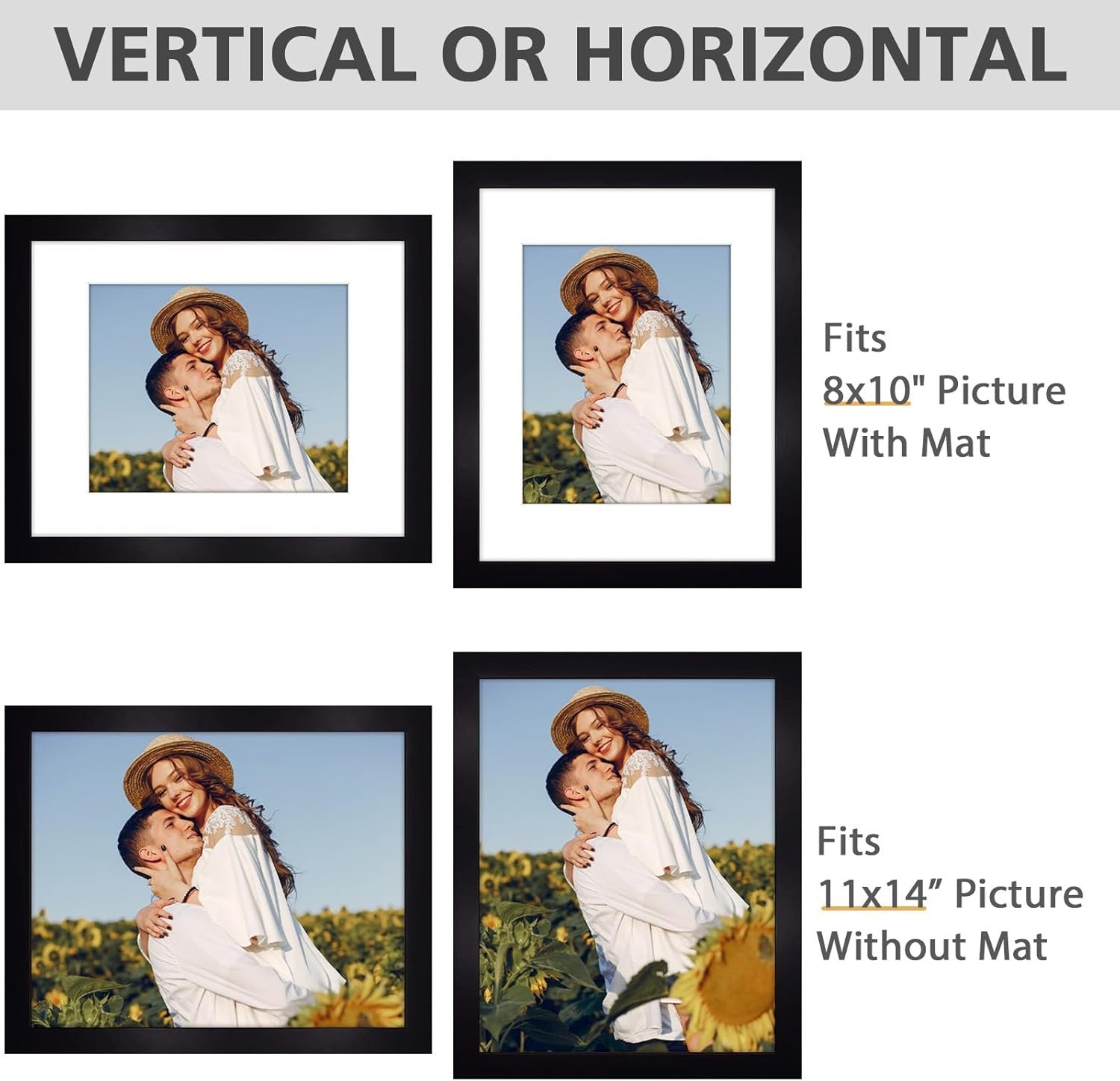 Photo Fit: Displays 11×14 without mat or 8×10 with mat.