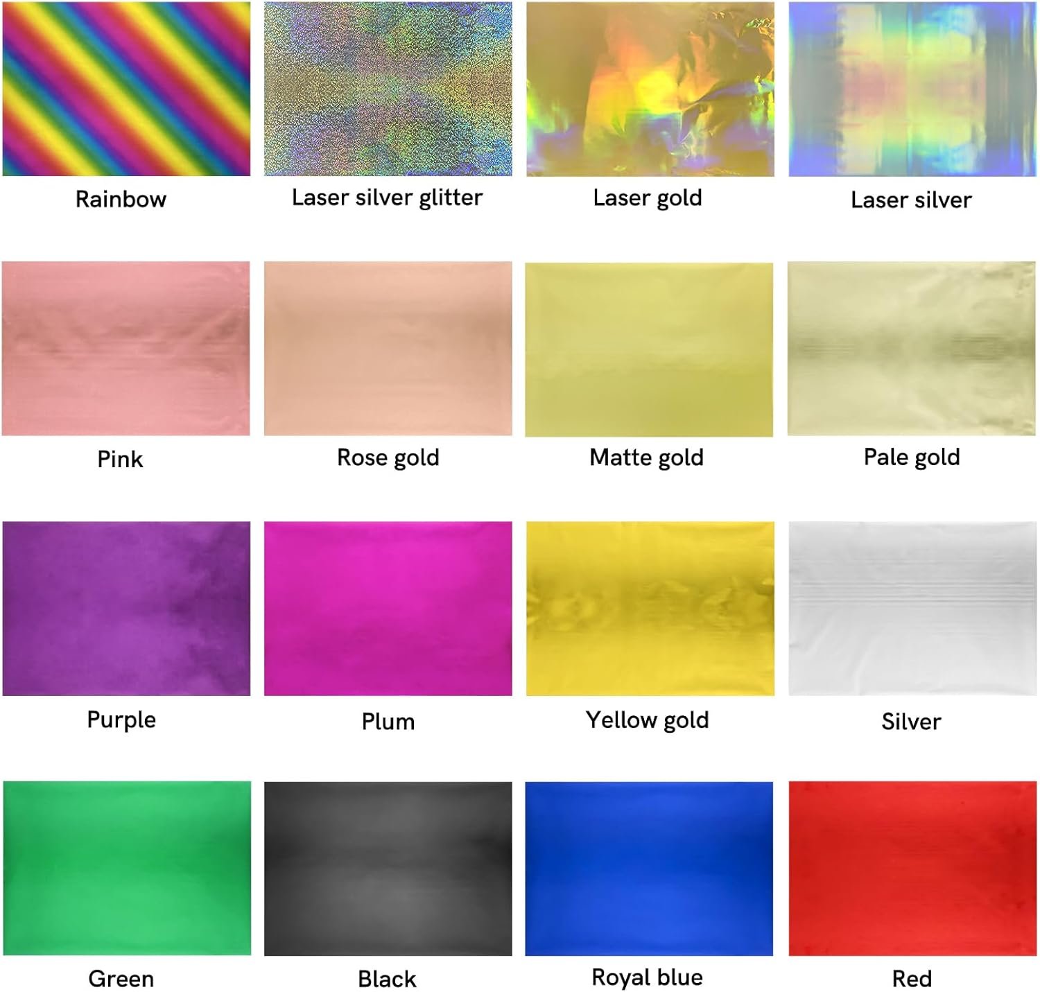 • ✅You will receive 50 Sheets Foil,20x29cm(7.9×11.4inch) approx per sheet,16 Colors,3 sheets of each color,using this Foil to create a unique gift for your family and friends.It is a happy thing to have a special gift on this special day.