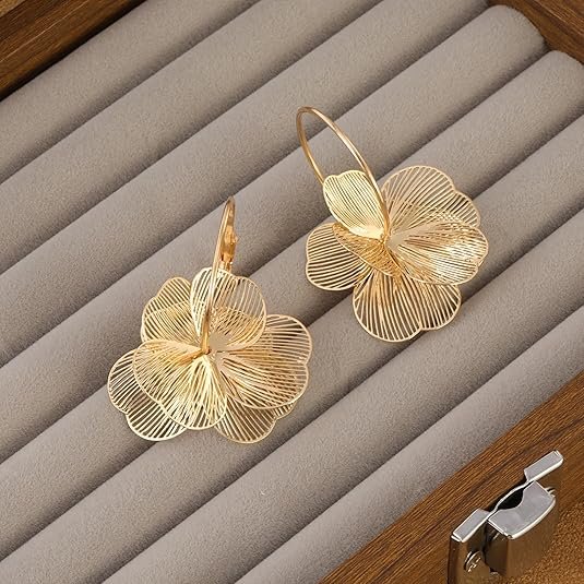 - Bold Floral Statement Design: Features eye-catching 3D flower drop earrings that reflect light beautifully, creating a striking and fashionable look with every movement