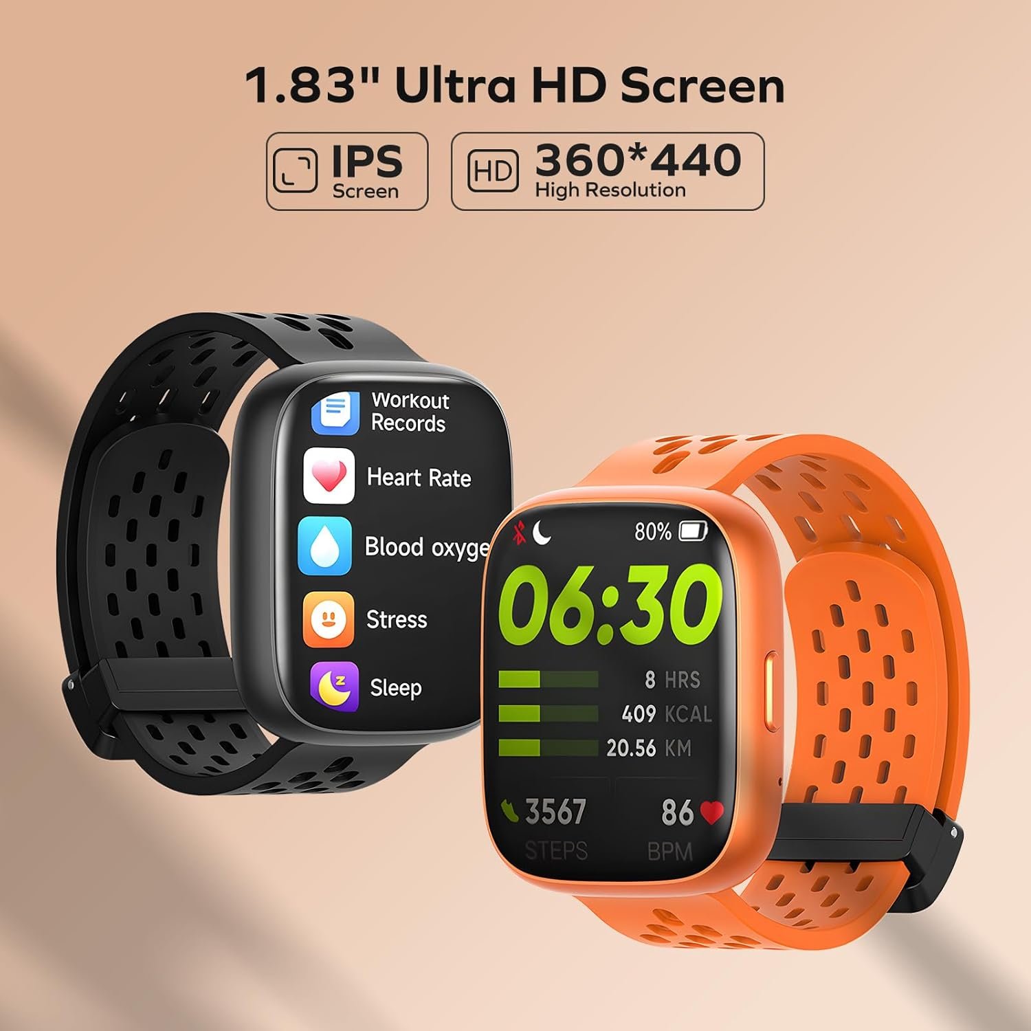 IP68 Waterproof Design: Sweat, rain, handwashing safe with clear 1.83″ TFT screen