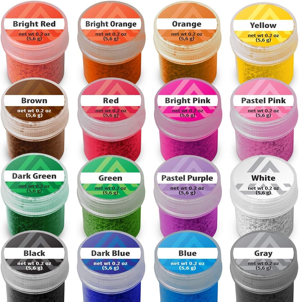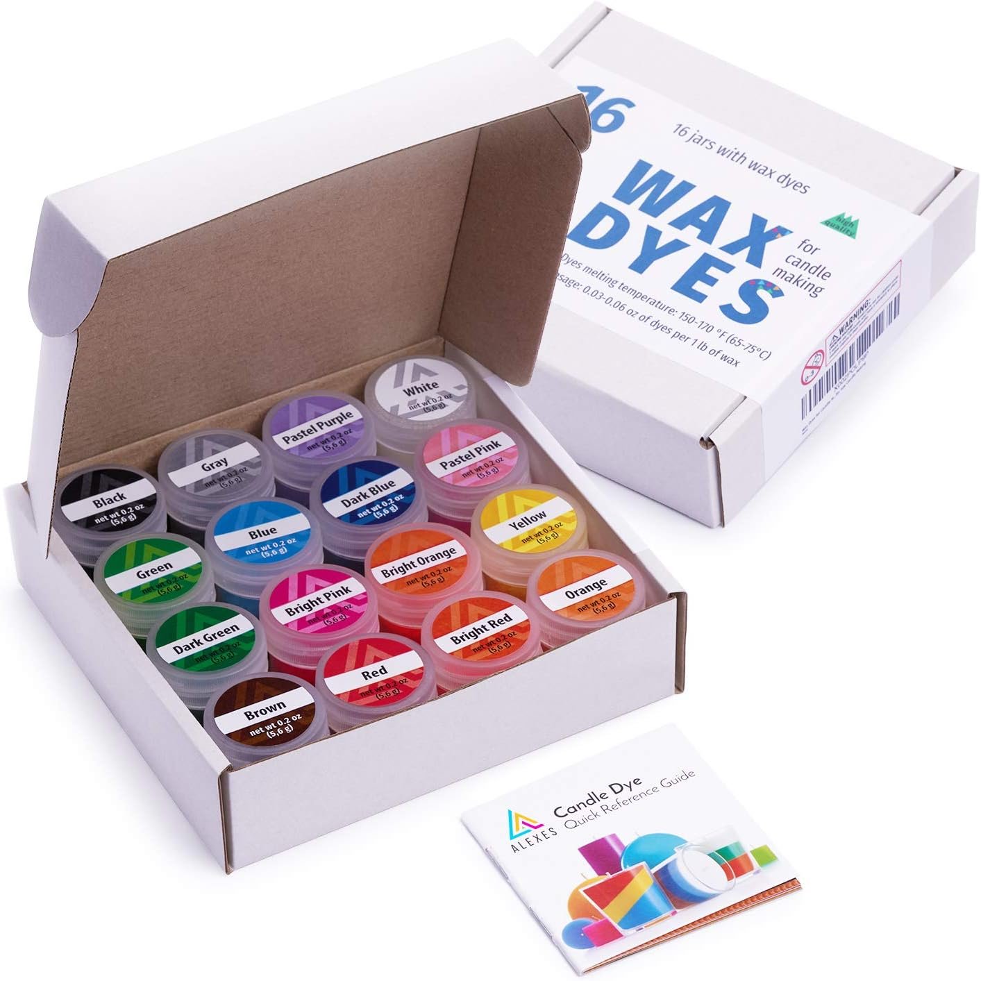 • 16 COLORANTS SET FOR CANDLE MAKING: This wax dye set for candles contains 16 jars with high quality individually colored chips suitable for nearly any kind of wax, except for gel wax