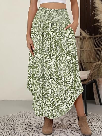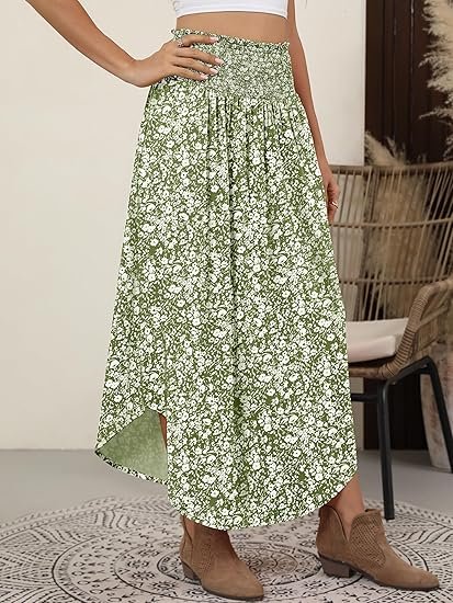 - Flowy & Lightweight Design: High-waisted maxi skirt with swing and pleated details for effortless summer style