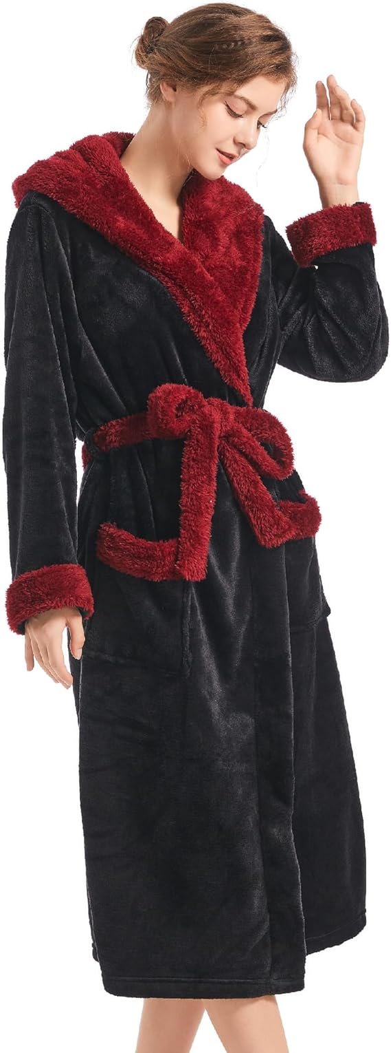 Women Hooded Plush Fleece Bathrobe Cozy Warm Soft Robe