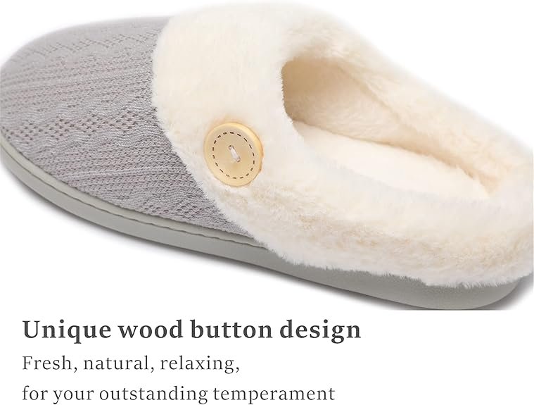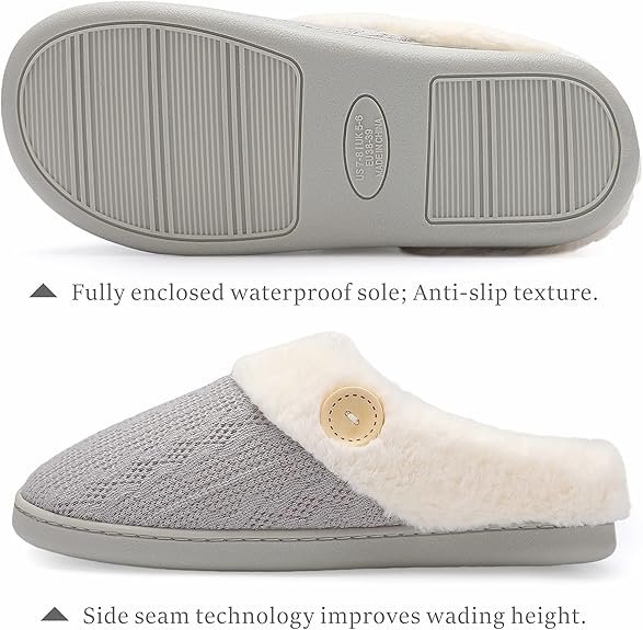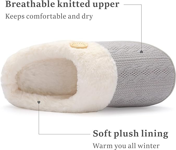 Women’s Warm Memory Foam Knit Faux Fur Indoor Outdoor Slippers