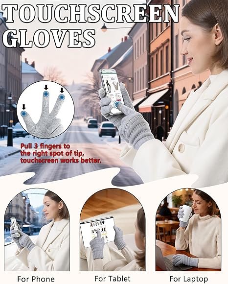 • Touchscreen Friendly: Conductive yarn on thumb, index, and middle fingers allows phone use without removing gloves