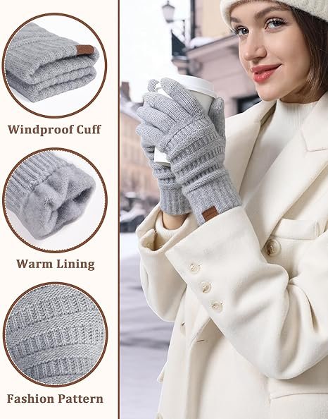 • Cozy Thermal Warmth: Plush fleece lining and soft knit fabric keep hands comfortable in cold weather